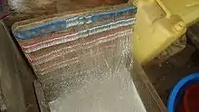 Fishing gear and methods used in Uganda are both modern and traditional. Fish in Uganda are caught mostly with plank canoes and to a lesser extent, fiberglass boats. Some dugout canoes are also still being used. The plank canoes are generally 4–12 m (13.12–39.37 ft) in length and dugout canoes average 3.5 m (11.48 ft). The total number of vessels is about 17,000 and about 20% of these are motorized.[1] Artisanal fishermen use various gear including gillnets, seines and hook and line. In a number of localities, traditional methods including baskets, traps and mosquito nets continue to be used.[2] The gear commonly used includes gillnets, lift nets, scoop-nets used in light fishing; hook and line gear (hand-lines, fishing rods or tackles) and fish traps.[3]