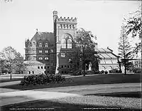 The 2012 centenary of Furness's death was observed with exhibitions at the Philadelphia Museum of Art, the Pennsylvania Academy of the Fine Arts, the University of Pennsylvania, Drexel University, the Library Company of Philadelphia, the Athenaeum of Philadelphia, the Delaware Historical Society, the First Unitarian Church of Philadelphia, and elsewhere.[21] On September 14, a Pennsylvania state historical marker was dedicated in front of Furness's boyhood home at 1426 Pine Street, Philadelphia (now Peirce College Alumni Hall). Opposite the marker is Furness's 1874-75 dormitory addition to the Pennsylvania Institute for the Deaf and Dumb, now the Furness Residence Hall of the University of the Arts.[22]