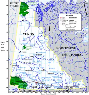 Yukon is bounded on the south by the 60th parallel of latitude. Its northern coast is on the Beaufort Sea. Its western boundary is 141° west longitude. Its ragged eastern boundary mostly follows the divide between the Yukon River Basin and the Mackenzie River watershed to the east in the Mackenzie mountains.