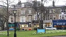 In the course of his career Dawson "erected several handsome blocks of buildings", which included the Britannia Buildings adjoining the Crown Estate, Prospect Crescent in James Street, Cambridge Crescent in Parliament Street, and "numerous others".[7][16][17] Some of those others are buildings in Parliament Street including Fattorini the Jeweller (1866–1868),[16][18][19] numbers 3–29 Swan Road (1881–1886),[16] and James Street including Ogden's jewellers,[11]:631,632[20] his residence Vanderbilt Court at 5 Victoria Avenue, 2–24 Crescent Road (Grosvenor Buildings), the wings of the Crown Hotel,[13] the block facing Victoria Park and Princes Square, and the block next to the Sulphur Well. He also built several villas in West End Park.[2][21] Some of these are now listed buildings, for example, 1–10 Prospect Crescent,[22] and 2–6 Crescent Road.[23]