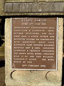 13. 1 2 Budby (8 September 2012). "Brown plaque on Vanderbilt Court, Harrogate: George Dawson". flickr.com. Flickr. Retrieved 27 January 2023.