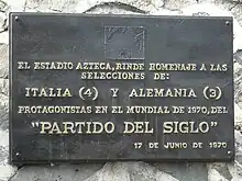 Commemorative plaque at Estadio Azteca (Mexico City) for the Game of the Century