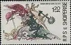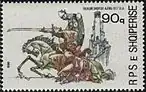 In Albanian folklore, Gjergj Elez Alia is regarded as a great warrior and his legend is one of the most popular. A song of Gjergj Elez Alia was recorded by Bernardin Palaj and Donat Kurti in Nikaj (Tropojë District) and published in Tirana in 1937.[27] The song is usually sung accompanied by the lahuta (gusle), or occasionally with çifteli, by the rapsod (performer of epic poetry).[28] The song of Gjergj Elez Alia is part of the heroic non-historical cycle of Albanian epic poetry, the Kângë Kreshnikësh ("Songs of Heroes"), however it is not related to the epic cycle of the pair of heroic brothers Muji and Halili.[29]