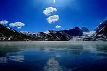 Gurudongmar Lake is one of the highest lakes in the world and in India, at an elevation of 5,430 m (17,800 ft) according to the Government of Sikkim.[1][2][lower-alpha 1] It is located in the Great Himalayas in the Mangan District in Indian state of Sikkim,[1] and considered sacred by Buddhists and Sikhs. The lake is named after Guru Padmasambhava—also known as Guru Rinpoche—founder of Tibetan Buddhism, who visited in the 8th century.