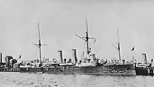 HMS Mildura was a Pearl-class cruiser built for the Royal Navy in the late 1880s. Originally named HMS Pelorus, she was renamed after an Australian town in April 1890.[2] Per the Imperial Defense Act of 1887, she served primarily in Australian waters.