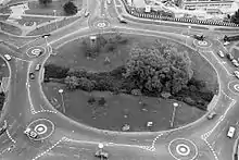 The initial plans for the New Town were drawn up by architect Geoffrey Jellicoe. His view of Hemel Hempstead, he said, was "not a city in a garden, but a city in a park." However, the plans were not well received by most locals. Revised, and less radical plans were drawn up, and the first developments proceeded despite local protests in July 1948. The first area to be developed was Adeyfield. At this time the plans for a revolutionary double roundabout at Moor End were first put forward, but in fact it was not until 1973 that the roundabout was opened as it was originally designed. (It was quickly christened 'The Magic Roundabout' by locals, echoing the name of the children's TV show.) The first houses erected as part of the New Town plan were in Longlands, Adeyfield, and went up in the spring of 1949. The first new residents moved into their new houses in February 1950.[29]