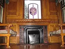 One of seven ornate fireplaces