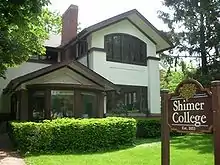 In 1909, a College Hall was erected on the campus, and a junior college program was formally begun.[18] In that year the enrollment was the highest on record.[26] The school had already been providing college-type instruction since 1907.[27] The first junior college class graduated in 1910.[28] The name of the college was changed from "Frances Shimer Academy" to "Frances Shimer School" in 1910.[22] At this time, the school offered two separate courses of study: a 4-year academy course equivalent to high school, and the 2-year junior college course.[18] As the academy was phased out, the name of the school was changed again to "Frances Shimer Junior College" in 1932.[22][27]