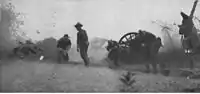 Cannons were crucial in Napoleon Bonaparte's rise to power, and continued to play an important role in his army in later years.[123] During the French Revolution, the unpopularity of the Directory led to riots and rebellions. When over 25,000 of these royalists—led by General Danican—assaulted Paris, Paul François Jean Nicolas, vicomte de Barras was appointed to defend the capital; outnumbered five to one and disorganized, the Republicans were desperate.[124] When Napoleon arrived, he reorganized the defenses, while realizing that without cannons, the city could not be held. He ordered Joachim Murat to bring the guns from the Sablons artillery park; the Major and his cavalry fought their way to the recently captured cannons, and brought them back to Napoleon. When Danican's poorly trained men attacked, on 5 October 1795, 13 Vendémiaire, 4 in the calendar used in France, at the time—Napoleon ordered his cannons to fire grapeshot into the mob,[125] an act that became known as the "whiff of grapeshot".[126] The slaughter effectively ended the threat to the new government, while, at the same time, made Bonaparte a famous—and popular—public figure.[125][127] Among the first generals to recognize that artillery was not being used to its full potential, Napoleon often massed his cannons into batteries, and introduced several changes into the French artillery, improving it significantly, and making it among the finest in Europe.[128][129] Such tactics were successfully used by the French, for example, at the Battle of Friedland, when sixty-six guns fired a total of 3,000 roundshot, and 500 grapeshot,[128][130] inflicting severe casualties on the Russian forces, whose losses numbered over 20,000 killed and wounded, in total.[131] At the Battle of Waterloo—Napoleon's final battle—the French army had many more artillery pieces than either the British or Prussians. As the battlefield was muddy, recoil caused cannons to bury themselves into the ground after firing, resulting in slow rates of fire, as more effort was required to move them back into an adequate firing position;[132] also, roundshot did not ricochet with as much force from the wet earth.[133] Despite the drawbacks, sustained artillery fire proved deadly during the engagement, especially during the French cavalry attack.[134] The British infantry, having formed infantry squares, took heavy losses from the French guns, while their own cannons fired at the cuirassiers and lancers, when they fell back to regroup. Eventually, the French ceased their assault, after taking heavy losses from the British cannons and musket fire.[135]