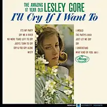I'll Cry If I Want To is the debut album of Lesley Gore. The album included her hit singles "It's My Party" and its follow-up, "Judy's Turn to Cry". The album was rushed out after "It's My Party" became a big hit, and the songs are mostly about crying, linking to the hit single's first line "It's my party and I'll cry if I want to", incorporating songs with titles such as "Cry", "Just Let Me Cry" and "Cry and You Cry Alone".[2][3] Besides the hit singles, the album included pop standards such as "Misty", "Cry Me a River" and "What Kind of Fool Am I?".[2] The album reached number 24 on the US Billboard 200.[4][5] Edsel Records released the album on Compact Disc in 2000 in combination with Gore's second album, Lesley Gore Sings of Mixed-Up Hearts.[6] The album was named the 181st best album of the 1960s by Pitchfork.[7]