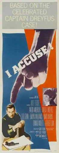I Accuse! is a British 1958 CinemaScope biographical drama film directed by and starring José Ferrer. The film is based on the true story of the Dreyfus affair, in which a Jewish captain in the French Army was falsely accused of treason.
