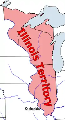 The Territory of Illinois was an organized incorporated territory of the United States that existed from March 1, 1809,[1] until December 3, 1818, when the southern portion of the territory was admitted to the Union as the State of Illinois. Its capital was the former French village of Kaskaskia on the Mississippi River (which is still a part of the State of Illinois). The northern half of the territory, modern Wisconsin and parts of modern Minnesota and Michigan became part of the Territory of Michigan in 1818.