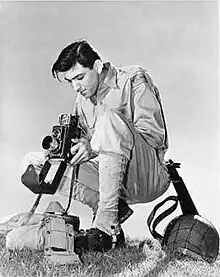 In July 1941[3] Bushemi was inducted into the U.S. Army at Fort Benjamin Harrison in Indianapolis, Indiana, and took basic training at Fort Bragg, North Carolina.[10] He was appointed to Fort Bragg's public relations office as a staff photographer, where his fellow staff member and close friend was Marion Hargrove, author of See Here, Private Hargrove (1942), a bestseller made into a subsequent movie about Hargrove's experiences in the military. Bushemi was included as a principal character in Hargrove's book.[7] Bushemi's publicity photo of Hargrove appeared on the book's back cover.[11]