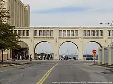 Arch bridge in Brooklyn Army Terminal, used to describe exterior of Arkham State Hospital.