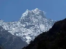 Kusum Kanguru (alternatively Kusum Kangguru, Kusum Kangru, Kusum Kang, Kusum Khangru, Kusumkhang Karda or Mount Kanguru) is a mountain in the Khumbu Region of the Himalaya in Nepal. Its name, Kusum Kanguru, means "Three Snow-White Gods" in the Sherpa language, which refers to the triple summit of the mountain.