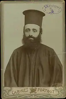 One of the first committees to protect villages was Pisoderi, one of the founding members was Lazaros Tsamis.[5] His contacts with wealthy Muslim merchants and Albanian politicians and military officials in Korestia, Prespa and Korçë quickly made him a valuable, trusted and passionate partner of Germanos Karavaggelis, Bishop of Kastoria, and the Greek Consulate of Bitola. Lazarus and his brother Papastavros organized a dense network of information in the Prespa region based on personal and business contacts.[6] In the village of Agios Germanos, members of the network were Evangelos Dimoulas, Mountousis, Paraskevaidis, Papanaum in the village Laimos Prespa Traikos Vassilopoulos, in the village Platy families Michaelides and Karidas, in the village of Kallithea Prespa Petridis in the village Pixos family Papadopoulos, in the village of Psarades Prespa Papastefanos, in the village of Karyes Prespa family Anastasiou and in the village Antartiko Traikos Lantzakis.[7] At the instigation of Bishop Germanos Karavaggelis and with the consent of the Greek Consul of Monastiri Stamatios Kiouze Peza, Lazaros joined the pro-Bulgarian Internal Macedonian Revolutionary Organization (IMRO) along with his brother priest Stavros and other members of Pisoderi committee with the sole purpose of gathering information about the movements and activities of the Bulgarian revolutionary committee (pp. IMRO).[8][9][10]