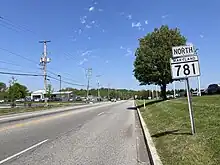 MD 781 begins at an intersection with US 40 (Pulaski Highway) in the town of Elkton 0.23 miles (0.37 km) west of the U.S. Highway's crossing of the Delaware state line. The highway heads north as a two-lane undivided road to the west of the state line and to the east of Grays Hill. MD 781 leaves the town of Elkton about halfway through its course, but the route follows a finger of unincorporated area between sections of the town to its northern terminus. That terminus is at MD 281 (Red Hill Road) 0.34 miles (0.55 km) west of that highway's crossing of the state line.[1][2]