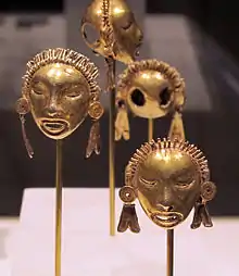 Gold pendants in the shape of heads, Mixtec or Aztec, c. 1400–1515, Metropolitan Museum of Art.