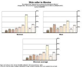 - ↑ "Encuesta Nacional Sobre Discriminación en Mexico" (PDF). CONAPRED. June 2011. pp. 40–43. Archived (PDF) from the original on 8 November 2012. Retrieved 28 April 2017.