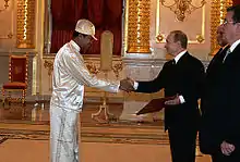 - ↑ "Vladimir Putin accepted letters of credentials from foreign states' new ambassadors to Russia". The Kremlin, Moscow: Presidential Press and Information Office. 16 November 2018. Retrieved 2020-11-02.