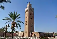 The Minbar of the Kutubiyya Mosque is a minbar (Arabic: منبر; a mosque furnishing similar to a pulpit) produced in Cordoba, Spain (al-Andalus at the time), in the early 12th century by order of the Almoravid amir Ali ibn Yusuf. The minbar was commissioned for the main mosque of Marrakesh, the Almoravid capital in Morocco. After the Almohad conquest of Marrakesh in 1147, the minbar was moved to the new Kutubiyya Mosque built by Abd al-Mu'min. It remained there until 1962, when it was moved into storage and then to the El Badi Palace for public display, where it remains today. Made primarily of wood and decorated with a variety of techniques, the minbar is considered one of the high points of Moorish, Moroccan, and Islamic art.[1][2][3][4] It was enormously influential in the design of subsequent minbars produced across Morocco and the surrounding region.[1][3]