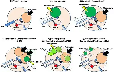 18. 1 2 Stoecker, Diane K. (1998). "Conceptual models of mixotrophy in planktonic protists and some ecological and evolutionary implications". European Journal of Protistology. 34 (3): 281–290. doi:10.1016/S0932-4739(98)80055-2.