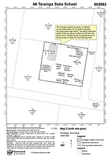 1. 1 2 3 4 5 6 7 8 9 10 11 12 13 14 15 16 17 18 19 20 21 22 23 24 25 26 27 28 29 30 31 32 33 34 35 36 37 38 "Mt Tarampa State School (entry 602853)". Queensland Heritage Register. Queensland Heritage Council. Retrieved 10 February 2018.