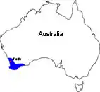 The Western pygmy perch is endemic to the south-western coastal drainages of Western Australia. Its range extends from the Waychinicup River east of Albany to the Arrowsmith River 300 kilometres (190 mi) north of Perth. It occurs in the majority of the river drainages within its range, as well as in lakes near the south coast.[1]