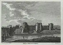 Bronze Age fishermen settled around the fertile estuary of the River Usk and later the Celtic Silures built hillforts overlooking it.[22] In AD 75, on the very edge of their empire, the Roman legions built a Roman fort at Caerleon to defend the river crossing. According to legend, in the late 5th century Saint Gwynllyw (Woolos), the patron saint of Newport and King of Gwynllwg founded the church which would become Newport Cathedral. The church was certainly in existence by the 9th century and today has become the seat of the Bishop of Monmouth. In 1049/50, a fleet of Orkney Vikings, under Welsh king Gruffydd ap Llywelyn, sailed up the Usk and sacked St Gwynllyw's church.[23][24] The church suffered a similar fate in 1063, when Harold Godwinson attacked south Wales.[25][26] The Normans arrived from around 1088–1093 to build the first Newport Castle and river crossing downstream from Caerleon and the first Norman Lord of Newport was Robert Fitzhamon.