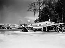 The squadron re-equipped with Lockheed Venturas in 1944.[5] In November it shifted base to Emirau, remaining there until February 1945 when it moved to Guadalcanal from May 1945 to June 1945 and Emirau again in June and July of that year before moving to Los Negros where it remained when the war ended, disbanding in September 1945.