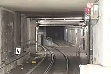 Tunnel just south of Potsdamer Platz station with the unused ramp for the Ringbahn branch connection