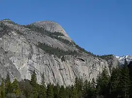 North Dome is a granite dome in Yosemite National Park, California. It is the southernmost summit of Indian Ridge, 0.6 miles (1.0 km) north of Washington Column and the Royal Arches on the northeastern wall of Yosemite Valley. It can be reached by trail from the Tioga Pass Road, or by going up the Yosemite Falls trail and heading east. It can also be reached from Mirror Lakes by the Snow Creek Falls trail going north around Indian Rock and then south again on the Tioga Pass Road trail. The South Face is precipitous.[3]