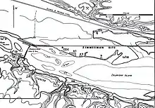 A 2022 article[7] argues the site of the Grand Village of the Illinois, as referred to by the early European explorers, was on the north side of the Sangamon River about 3 miles east of Chandlerville[7]: 54 and that the site near Starved Rock was a seasonal farming village.[7]: 34 (It also argues the lake referred to as Pimiteoui was not Peoria Lake but instead that near Beardstown[7]: 36 and places Fort Crevecoeur near there as well.[7]: 41 ) References are made to the journals and maps of the explorers and to the original plats of Illinois drawn in the early 1800s, before the rivers had been altered. (The Sangamon has since been channeled.)