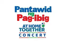 Pantawid ng Pag-ibig: At Home Together Concert (lit. transl.Bridge of Love) is a six-hour Philippine benefit concert television special held on March 22, 2020, in support of ABS-CBN Foundation's efforts in helping those heavily affected by the 2020 Luzon enhanced community quarantine caused by the COVID-19 pandemic in the Philippines. Hosted by TV Patrol Weekend news anchors Alvin Elchico and Zen Hernandez, the virtual concert featured musical performances and appearances by talents from ABS-CBN, appearing from their respective homes. The special aired on ABS-CBN and several of its sister broadcast and cable channels, radio stations, and digital streaming platforms.[1] The special was also aired on other stations that are members of the Kapisanan ng mga Brodkaster ng Pilipinas.