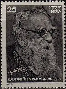 Erode Venkatappa Ramasamy (17 September 1879 – 24 December 1973), revered by his followers as Periyar[lower-alpha 1] or Thanthai[lower-alpha 2] Periyar, was an Indian social activist and politician who started the Self-Respect Movement and Dravidar Kazhagam. He is known as the 'Father of the Dravidian movement'.[1] He rebelled against Brahminical dominance and gender and caste inequality in Tamil Nadu.[2][3][4] Since 2021, the Indian state of Tamil Nadu celebrates his birth anniversary as 'Social Justice Day'.[5]