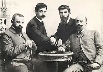 From left to right, Pencho Slaveykov, Peyo Yavorov, Petko Todorov, and Krastyo Krastev