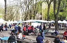 Portland Farmers Market is a nonprofit organization operating five farmers markets in Portland, Oregon, United States. The markets provide a direct connection to more than 200 vendors with deep roots in Oregon and Southwest Washington, including farms, nurseries, bakeries, meat and seafood providers, cheese makers and specialty food producers.[1] The flagship market at Portland State University was named the best farmers market in the United States for its size, varied offerings, live entertainment, and more, by Bravo TV.[2] The same market was ranked #2 in the country for its number of vendors, amount of local, seasonal produce, year-round live music, the market managers' consideration of every detail, and making the most of what the region has to offer by supporting local farmers, by The Daily Meal.[3]