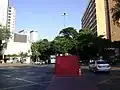 The square a lively meeting place for belo-horizontinos, since it is located in the center of the neighborhood of Savassi, an important commercial city. The wide range of patrons range from families who go shopping or to the cafes and restaurants in the area until the young bohemian who frequents the bars or spend the weekend nights on the banks of the square. Since 2006, the site that once housed mostly boutiques, restaurants and snack bars, shops was invaded by mobile companies. The patrons of the traditional Café Três Corações (Three Hearts Café) came to protest against its closure at the site due to the opening of a store operator Claro. After the protest, the cafe has been reopened in a smaller area, corresponding to a small fraction of the old facility, with access only by Rua Antonio de Albuquerque.[2]