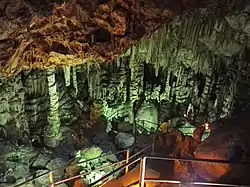 Psychro Cave (Greek: Σπήλαιο Ψυχρού) is an ancient Minoan sacred cave in Lasithi plateau in the Lasithi district of eastern Crete. Psychro is associated with the Diktaean Cave (Greek: Δικταῖον Ἄντρον; Diktaion Antron), one of the putative sites of the birth of Zeus. Other legends place Zeus' birthplace as Idaean Cave (Ἰδαῖον Ἄντρον) on Mount Ida. According to Hesiod, Theogony (477-484), Rhea gave birth to Zeus in Lyctus and hid him in a cave of Mount Aegaeon. Since the late nineteenth century the cave above the modern village of Psychro has been identified with Diktaean Cave, although there are other candidates, especially a cave above Palaikastro on Mount Petsofas.[1]