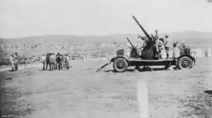 At the beginning of World War II in 1939, Britain possessed approximately 500 of these guns. Over the 1930s, they had been gradually modernized, and a limited production line was set up at the Commonwealth Ordnance Factory Maribyrnong, Australia.[26] Initially most were in the heavy anti-aircraft (HAA) role until replaced by the new QF 3.7-inch (94 mm) gun. Some were deployed as light anti-aircraft guns (LAA) for airfield defence, being transferred to the RAF Regiment when this was formed in 1942, until more 40 mm Bofors guns arrived[27] However, it was discovered at mobilization that the 233 guns in HAA reserve were missing various parts and predicted fire instruments.[28] One hundred and twenty were in France with the British Expeditionary Force in November 1939, compared with 48 of the modern QF 3.7-inch AA gun.[29]