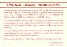 Budd won the contract by offering the lowest bid of $114,700 per car. The next lowest bidder came in at $117,900 per car, which was for low-alloy steel cars. Budd introduced stainless steel equipment to the modern New York City Subway system, a plan that was met with limited success.[11] NYCTA allowed a premium for subsequent stainless steel contracts, and all subsequent equipment was at least partly constructed of stainless steel. However, the Budd Company never benefited from the change, as they failed to win further contracts from the NYCTA, and the company has since halted the production of railroad cars.