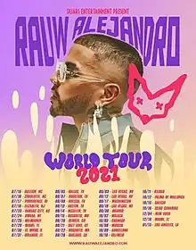 The Rauw Alejandro World Tour was the second concert tour by Puerto Rican singer Rauw Alejandro, in support of his first two studio albums, Afrodisíaco (2020) and Vice Versa (2021). It began on July 15, 2021 in Raleigh and concluded on December 18 of that year in Miami, with several shows throughout United States, Mexico, Spain, Puerto Rico, and Dominican Republic. Puerto Rican singer Eix served as a supporting act on the tour. The tour was met with highly positive reviews from critics, who complimented Alejandro's dance moves and choreography. His four sold-out shows at the José Miguel Agrelot Coliseum in San Juan had grossed over $3,086,525 from an audience of 51,692.