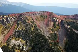 The lava flows were restricted by larger masses of ice in the valleys on either side of Mount Ray, so the lava did not extend any great distance from its origin.[2][3]