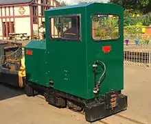 In December 1929, a 4 ft 8+1⁄2 in (1,435 mm) standard gauge 0-6-0 diesel locomotive was obtained to work the Ravenglass-Murthwaite section. It was built by Kerr Stuart (works number 4421) and had a six-cylinder, 90 horsepower (67 kW), McLaren-Benz engine. Transmission was mechanical and final drive was by roller chains. In 1955 it was sold, through a dealer, to the National Coal Board for use at Wingate Grange Colliery, Durham. A new Dorman engine of 90 horsepower (67 kW) was fitted in 1960.[9] It is now preserved at the Foxfield Light Railway,[10] restored to original external condition, and was displayed at Ravenglass in the summer of 2000.