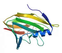 Rusticyanin (RCN) is a copper protein with a type I copper center that plays an integral role in electron transfer.[3][4] It can be extracted from the periplasm of the gram-negative bacterium Thiobacillus ferrooxidans (T. ferrooxidans), also known as Acidithiobacillus ferrooxidans (At. ferrooxidans).[5] Rusticyanin is also found in the membrane-bound form in the surface of T. ferrooxidans. It is a part of an electron transfer chain for Fe(II) oxidation.[4][6]