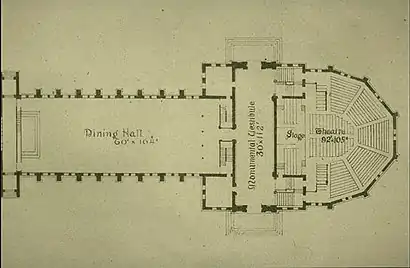 Between 1865 and 1868 an alumni "Committee of Fifty" raised $370,000 (equal to one-twelfth of Harvard's entire endowment at the time) toward a new building in memory of Harvard men who had fought for the Union in the American Civil War,[7] particularly the 136 dead[8]—a "Hall of Alumni in which students and graduates might be inspired by the pictured and sculpted presence of her founders, benefactors, faculty, presidents, and most distinguished sons." When, about the same time,[7] a $40,000 bequest was received from Charles Sanders (class of 1802) for "a hall or theatre to be used on [any] public occasion connected with the College, whether literary or festive", a vision was formed of a single building containing a large theater as well as a large open hall, and thus meeting both goals.[7]