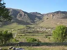 A view of the western portion of the Sapna valley looking north towards the village of Araden and the Gozaneh mountains