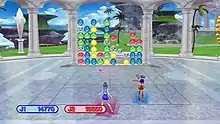The gameplay in Sega Superstars Tennis is similar to Sega's Virtua Tennis series, with characters able to perform techniques such as lob shots and drop shots. Characters each have different statistics and proficiency in specific areas, such as power or control. Each character also has their own unique "Superstar State", a special ability that can be activated once an accompanying meter is filled. The effects of a Superstar State vary depending on the character; for example, Sonic transforms to Super Sonic and causes the ball to zig-zag when hit, while Gilius summons thunderbolts that can temporarily stun opponents. The game features 10 courts themed after various Sega games, such as Green Hill Zone from Sonic the Hedgehog and Shibuya Downtown from Jet Set Radio.[3]