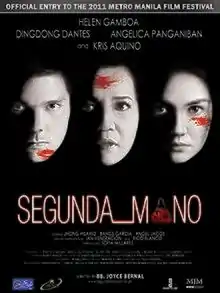 Segunda Mano (lit. 'Second Hand') is a 2011 Filipino supernatural horror film directed by Joyce Bernal, and starring Kris Aquino, Dingdong Dantes, and Angelica Panganiban. The film was produced and released by Star Cinema with the co-production of AgostoDos Pictures, and MJM Productions. It is also an official entry to the 2011 Metro Manila Film Festival.[2]