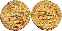 In most of their coins, the Seljuk sultans used the Sasanian title of shahanshah (King of Kings), and even used the old Buyid title of "Shahanshah of Islam."[76] The title of malik was used by lesser princes of the Seljuk family.[77] Like the caliphate, the Seljuks relied on a refined Persian bureaucracy.[78] The settlement of Turkic tribes in the northwestern peripheral parts of the empire, for the strategic military purpose of fending off invasions from neighboring states, led to the progressive Turkicization of those areas.[79] According to the 12th-century poet Nizami Aruzi, all of the Seljuk sultans had a liking for poetry, which is also demonstrated by the large compilation of Persian verses written under their patronage. This had already started under Tughril, who was praised in Arabic and Persian by poets such as Fakhruddin As'ad Gurgani and Bakharzi, albeit he could not understand the verses. The last Seljuk sultan Tughril III was well known for his Persian poetry.[80] The Saljuq-nama of Zahir al-Din Nishapuri, which was most likely dedicated to Tughril III, indicates that the Seljuk family now used Persian to communicate, and even were taught about the achievements of their forefathers in that language.[81]